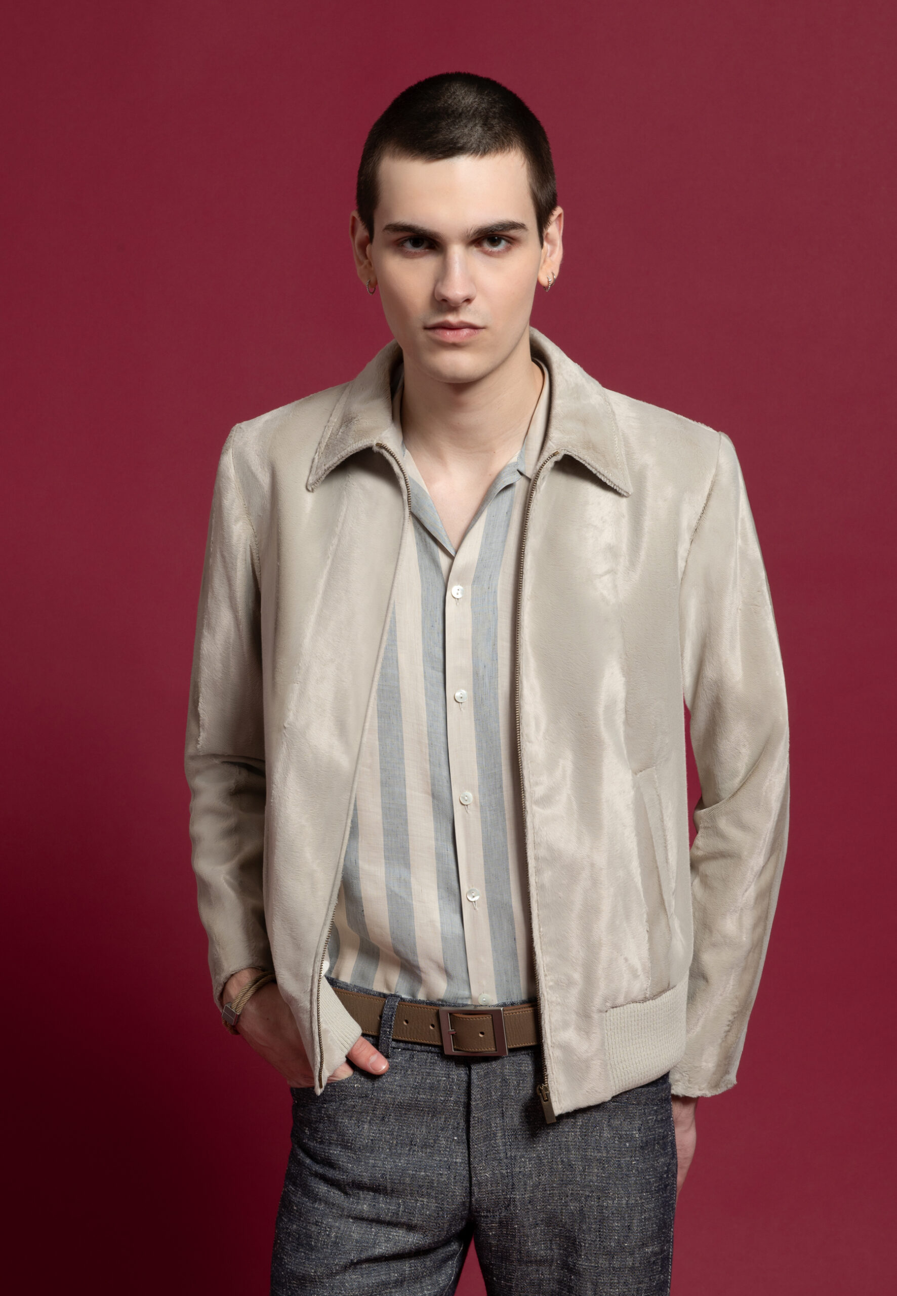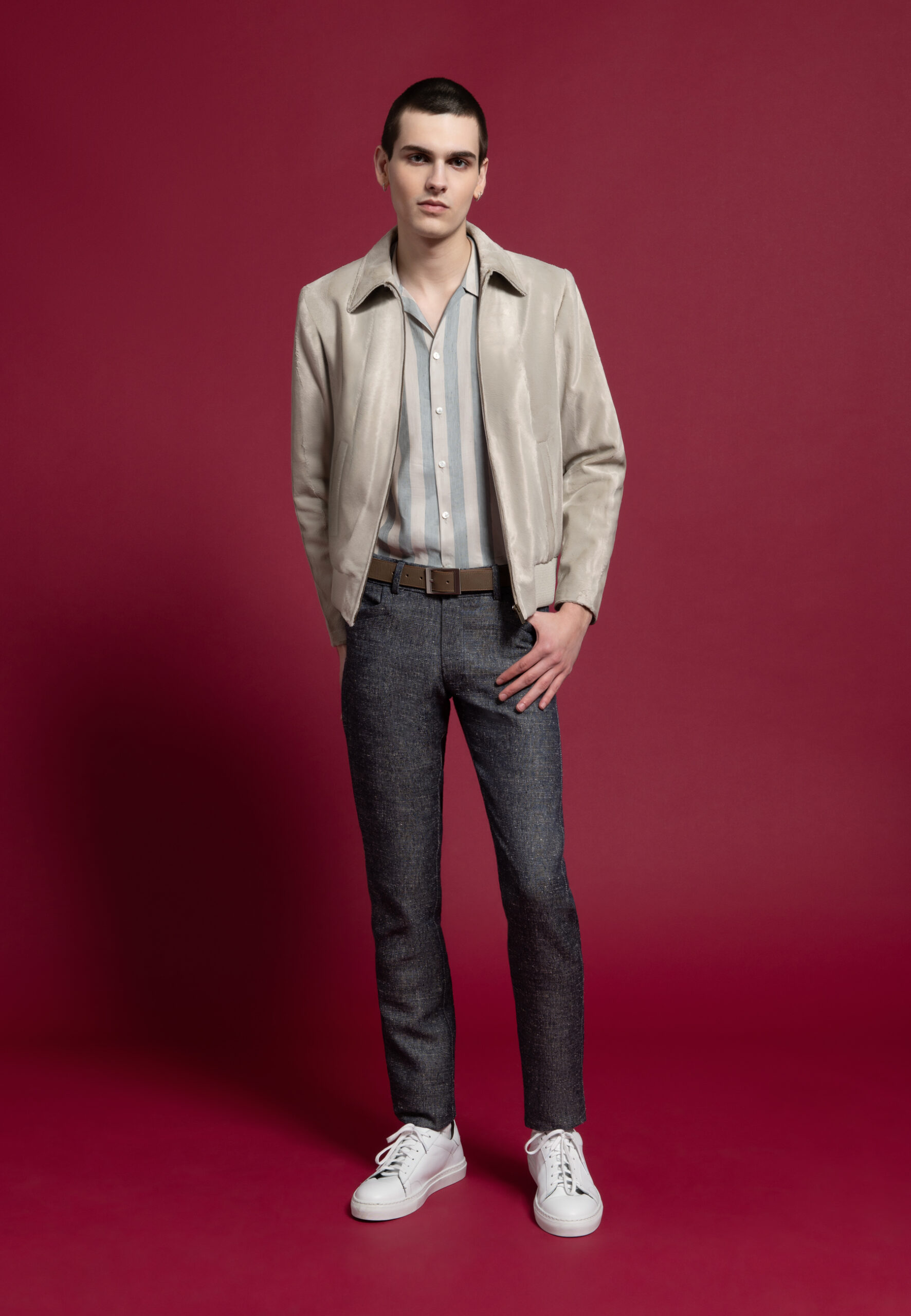 Notre mannequin Roman mesure 186 cm et porte une taille 48