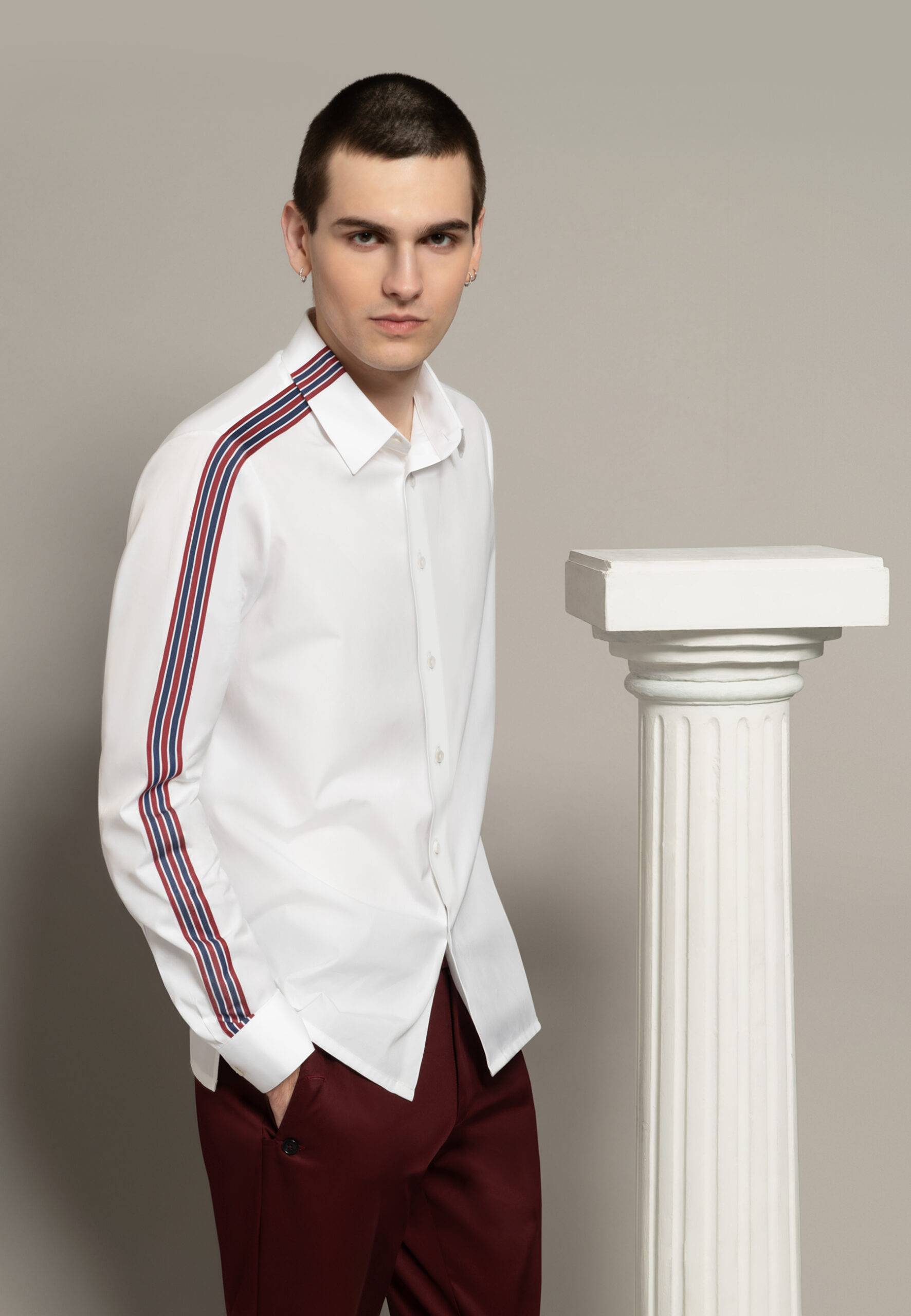 Chemise en popeline blanche à bande