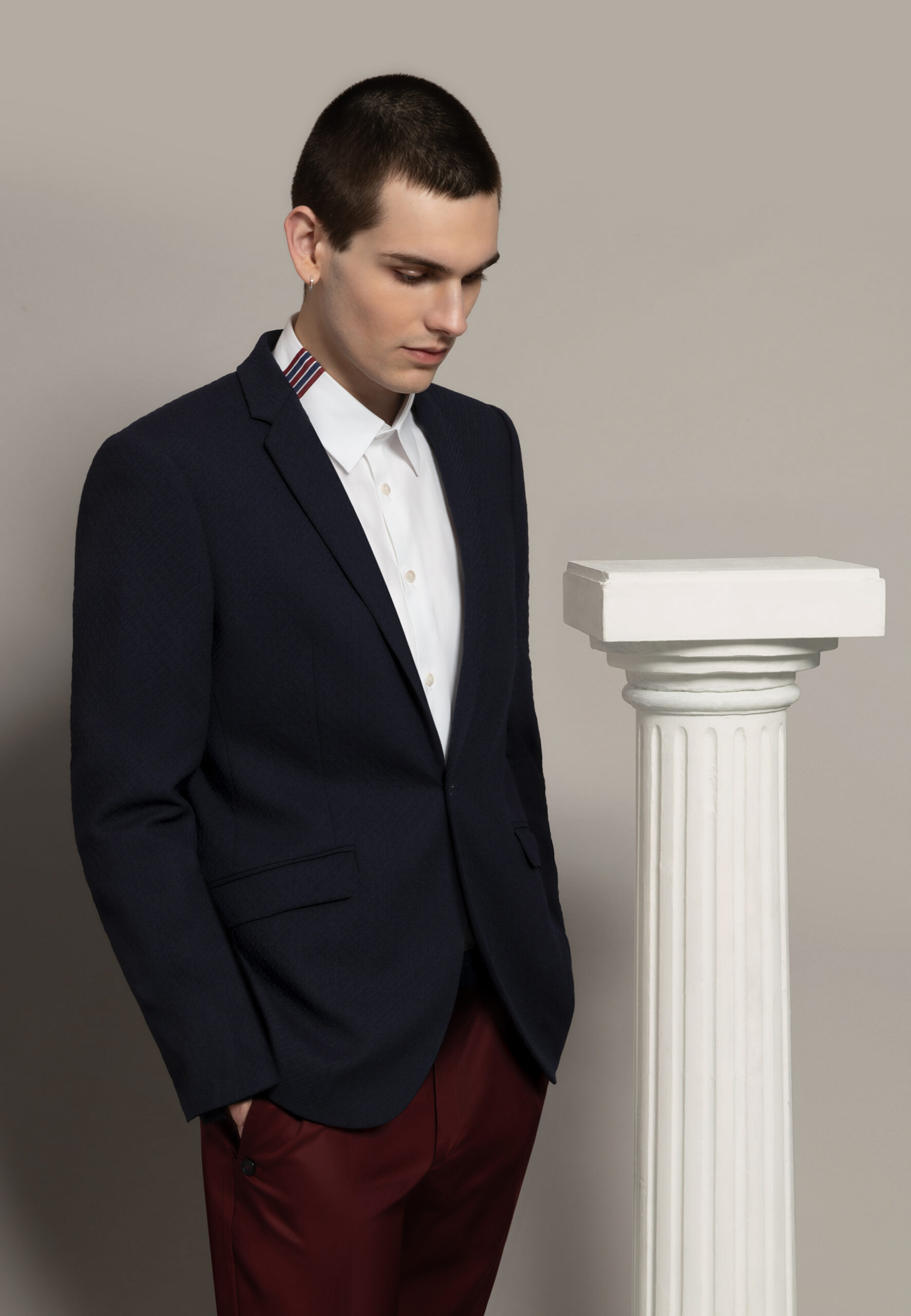 Notre mannequin Roman mesure 186 cm et porte une taille 4