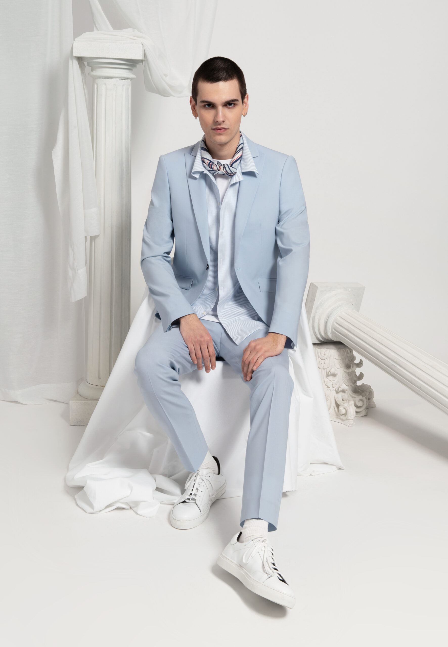 Notre mannequin Roman mesure 186 cm et porte une taille 48