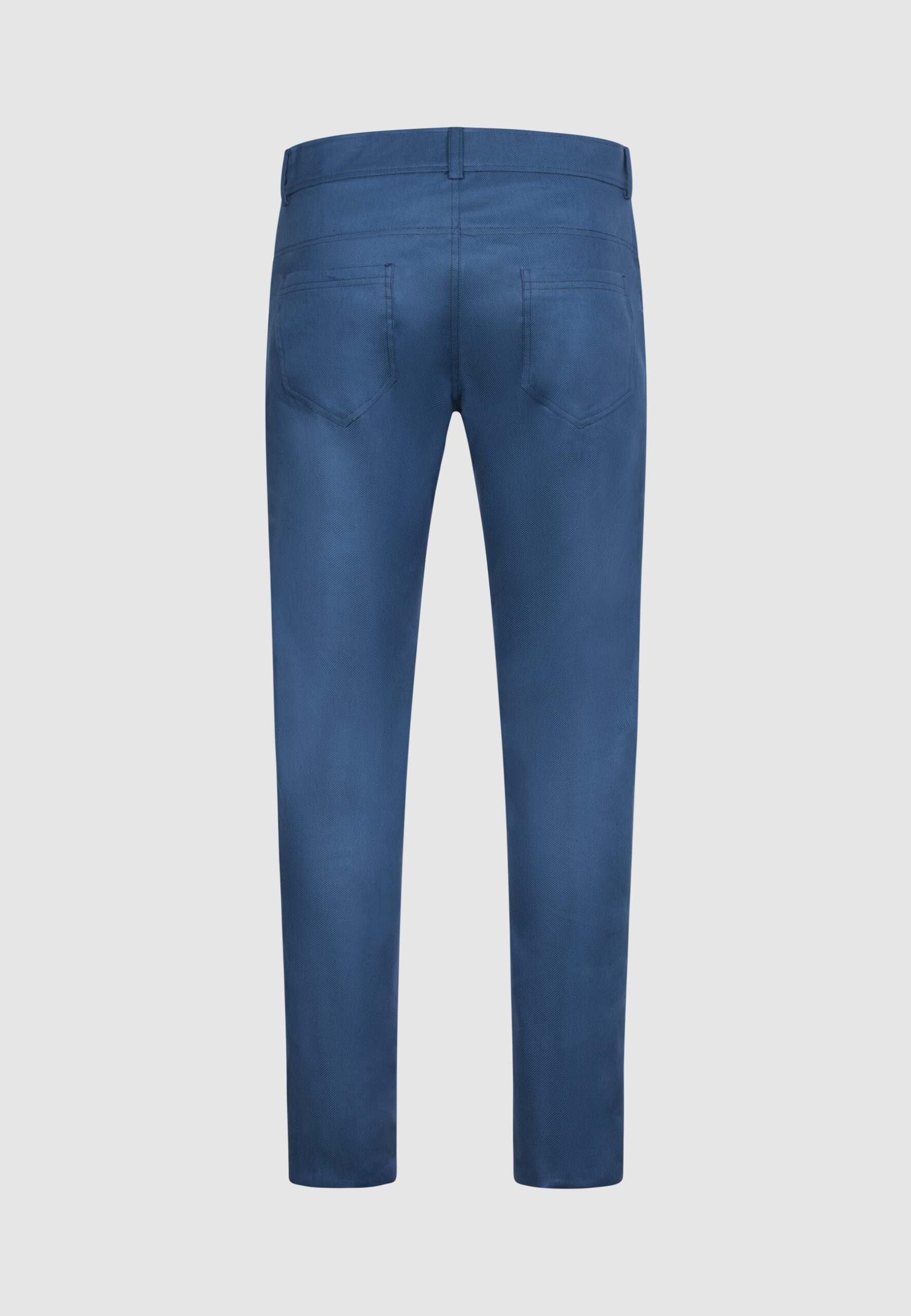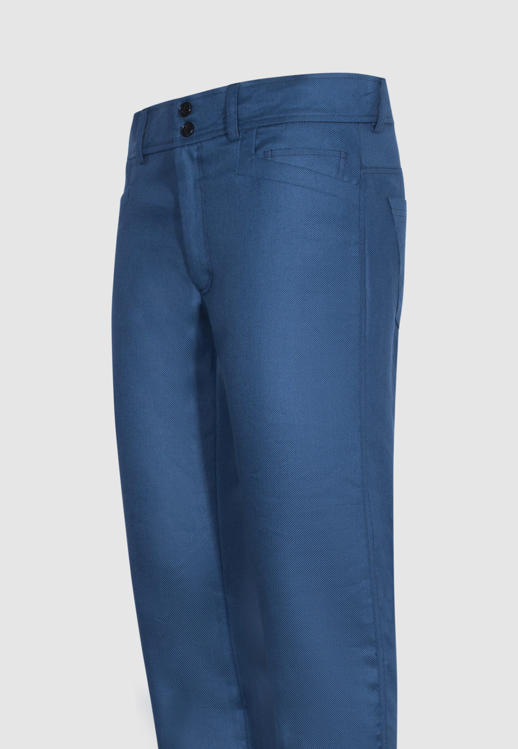 Pantalon 5 poches en sergé de coton et lin bleu