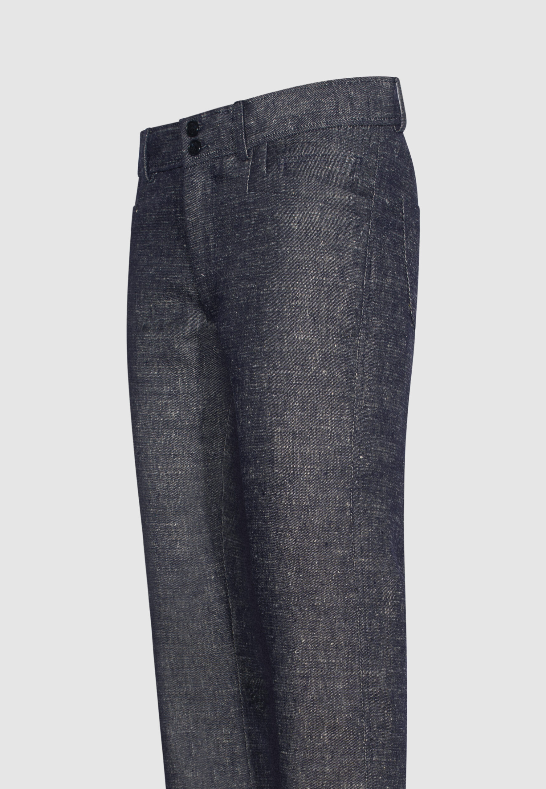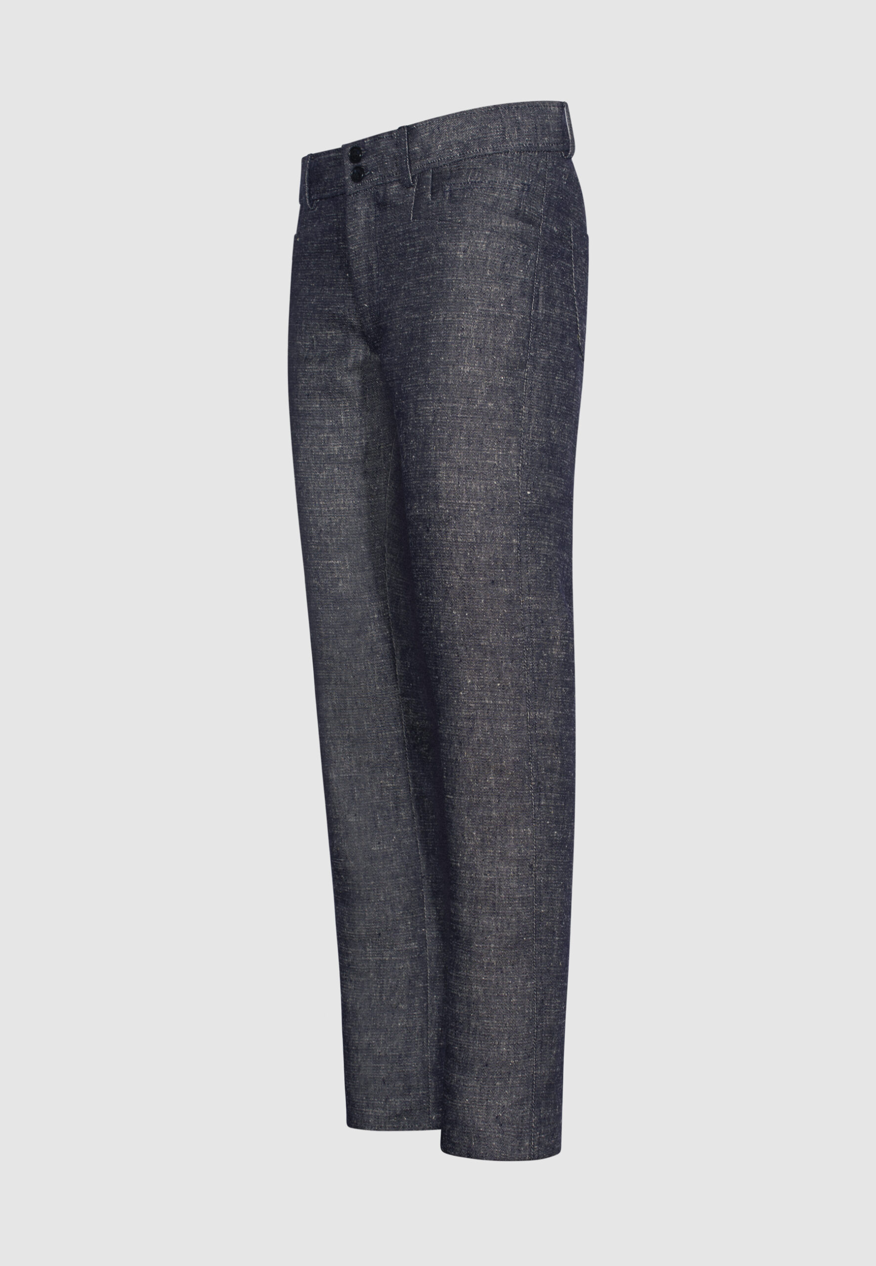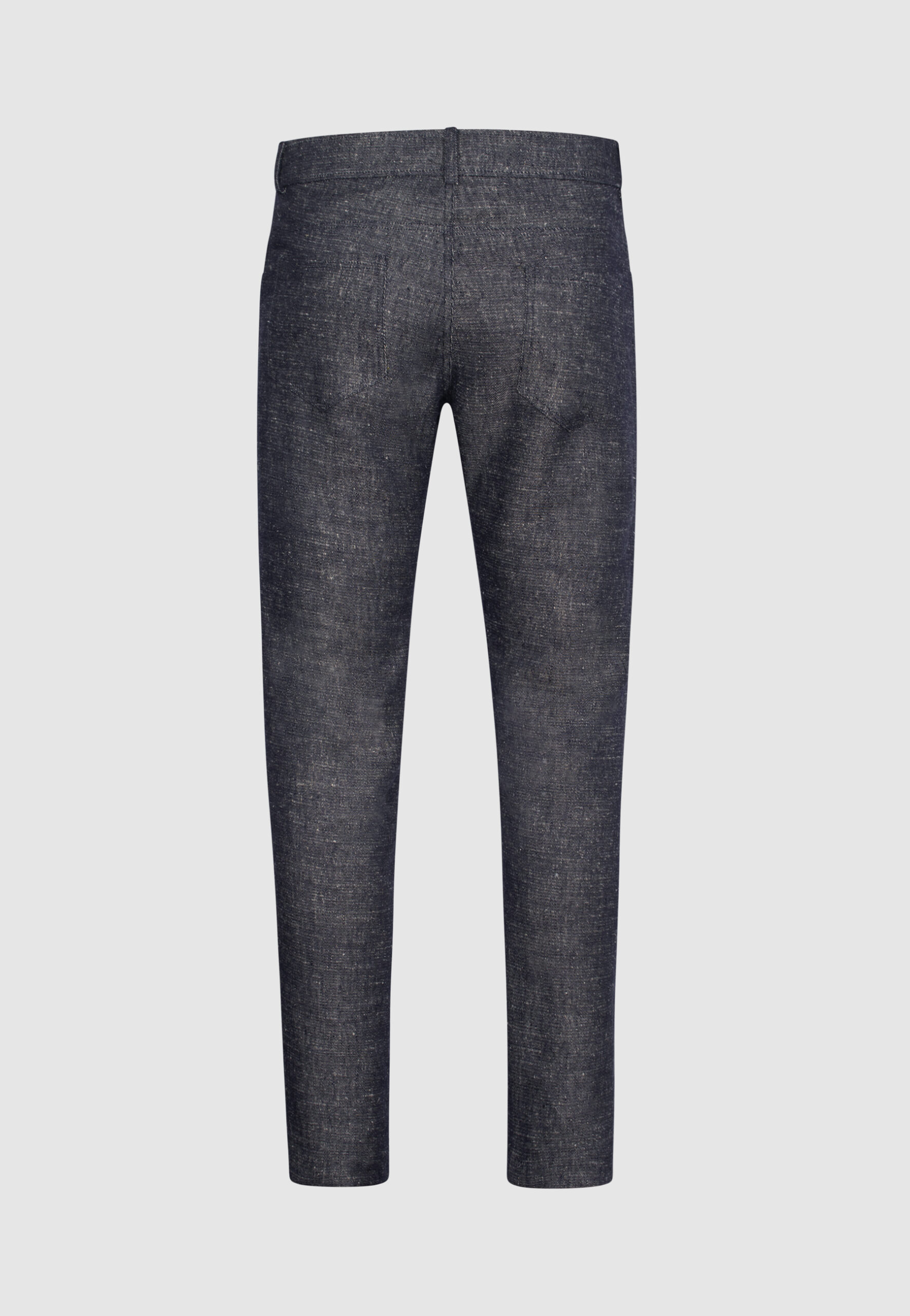 Pantalon 5 poches en denim bleu marine moucheté beige