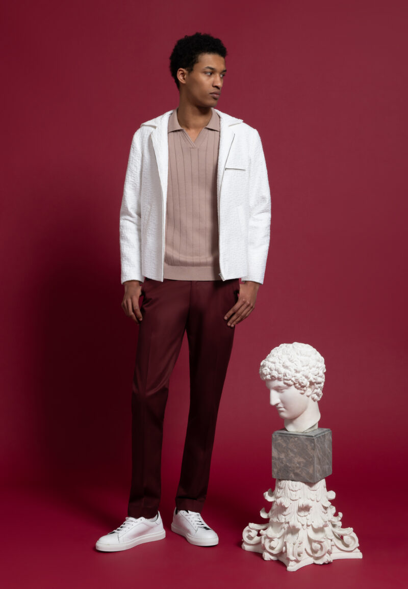 Notre mannequin Roman mesure 186 cm et porte une taille 48